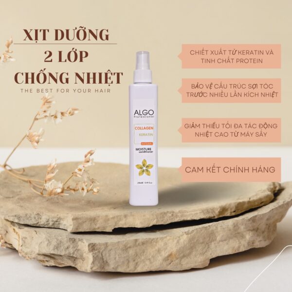 Sữa dưỡng tóc Algo Collagen Keratin là một trong những sản phẩm mang hàm lượng keratin và collagen cao nhất, kết hợp 2 lớp sữa dưỡng mang hương thơm dịu nhẹ, mùi hương lâu phai, giúp bảo vệ tóc khỏi những tác nhân vật lý như khói bụi, ánh nắng mặt trời …Sữa dưỡng tóc Algo Collagen Keratin giúp phục hồi tóc hư tổn,chẻ ngọn làm cho tóc trở nên mềm mượt.